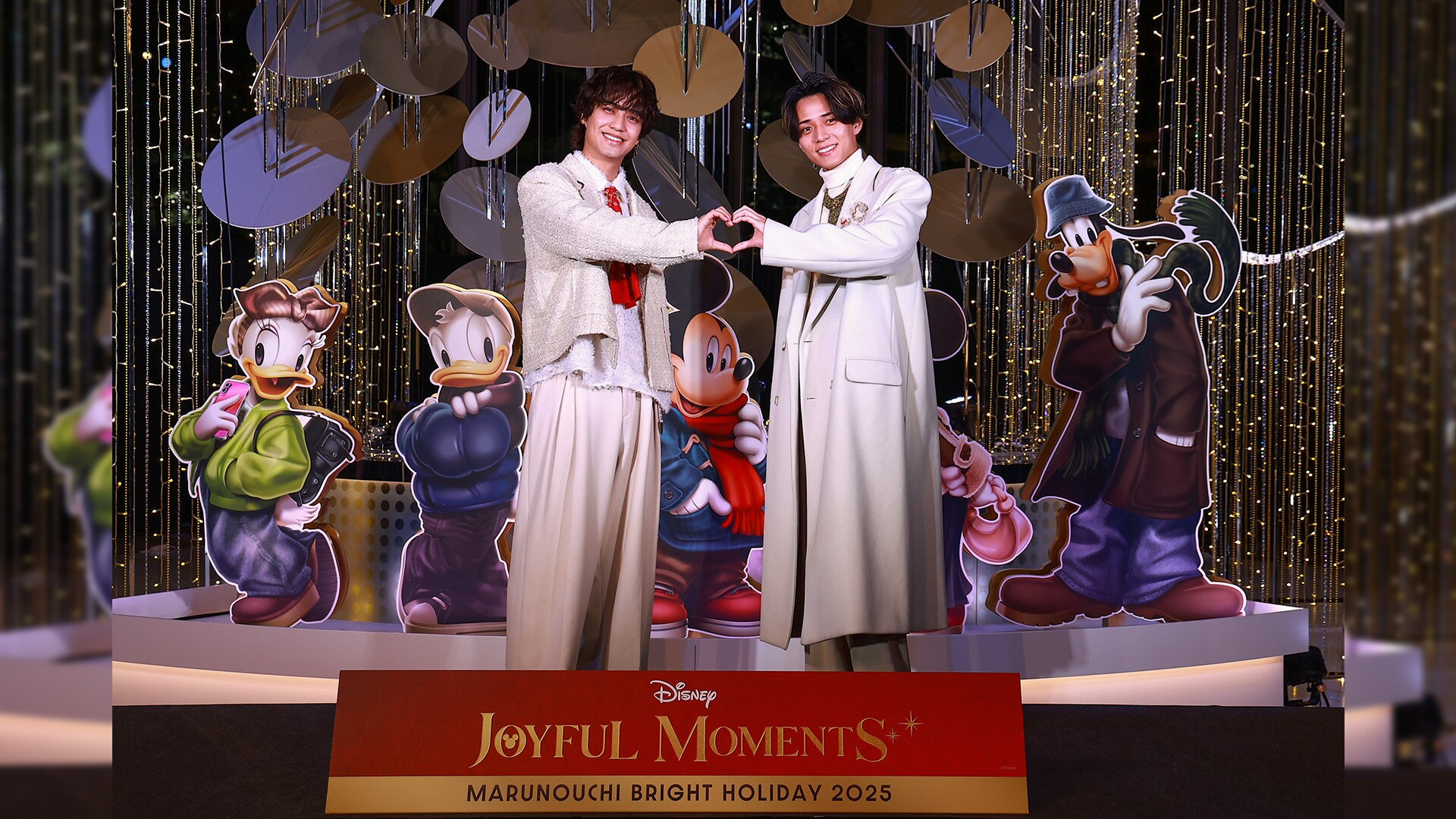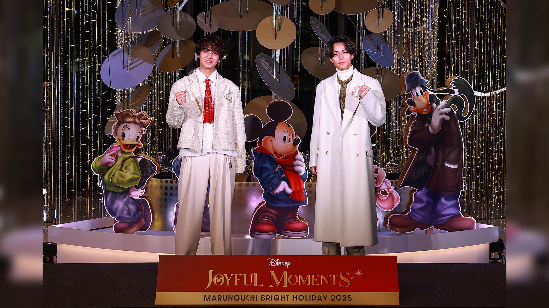 「いっしょなら、もっと輝く。」がテーマとなっている今年の「MARUNOUCHI BRIGHT HOLIDAY 2025」ですが、空から舞い降りるように重なる円盤状のメインモニュメント「JOYFUL MOMENTS ミッキー&フレンズ」が街中に彩るきらめきや仲間と喜び合う時間を華やかに表現されています。高さ11m超のモニュメントに驚きつつ、モニュメント前で楽しく華やぐミッキー&フレンズ(のパネル)を見て「ミッキーたちだ、可愛いよね」と永瀬さん。髙橋さんも「冬の格好してますね!」と笑顔を見せました。