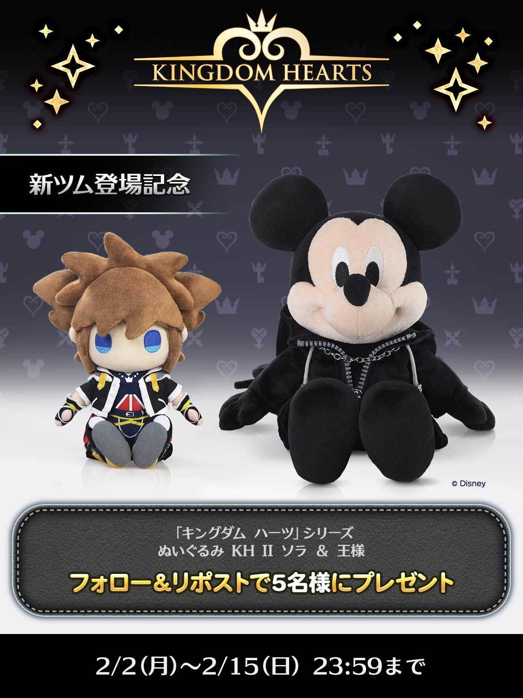 ディズニーゲーム公式Xアカウントをフォローし対象投稿をリポストした方と、ディズニーゲーム公式Instagramアカウントをフォローし対象投稿をいいねした方の、応募者全体の中から抽選で合計5名様に、「キングダム ハーツ」シリーズのぬいぐるみ「KHII ソラ」と「王様」をセットでプレゼントします。