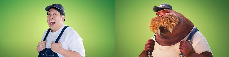そしてズートピアに隠された秘密の場所へ案内をする、おおらかで頼れるセイウチの船長【ラス】役には、お笑いコンビ<レインボー>のジャンボたかおさんが決定。