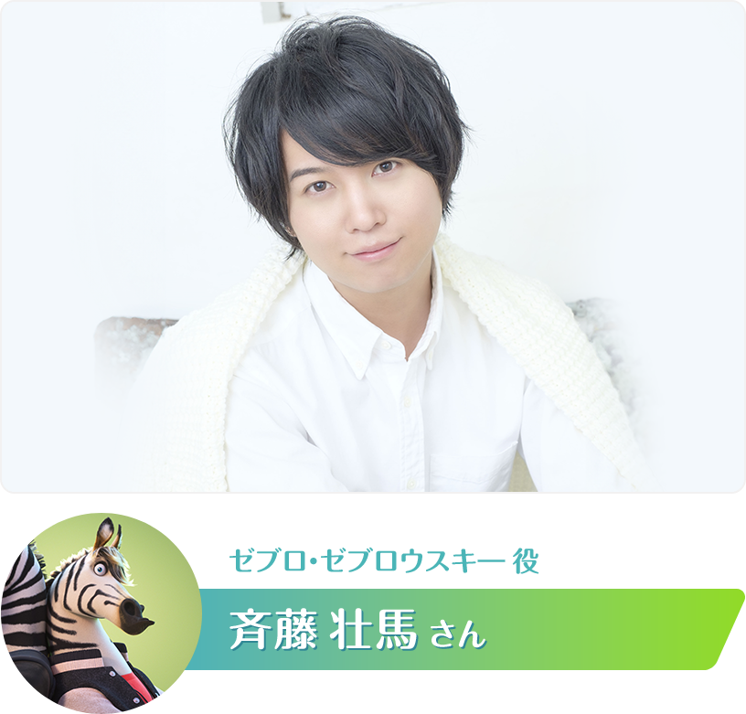 ぼくが声を担当したのはゼブラ、つまりシマウマ。伺うところによると、名前に馬が入っているからキャスティングされたとかされていないとか……。