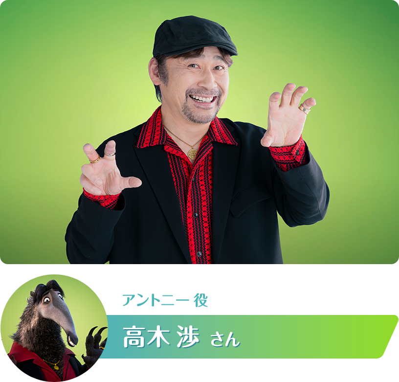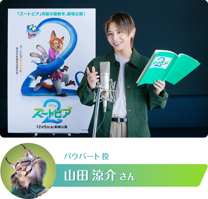 普段は、ミュージカル俳優として重厚な役を演じる機会が多いので、愉快なキャラクター達が登場する『ズートピア2』の仲間になれたこと、とても嬉しいです。