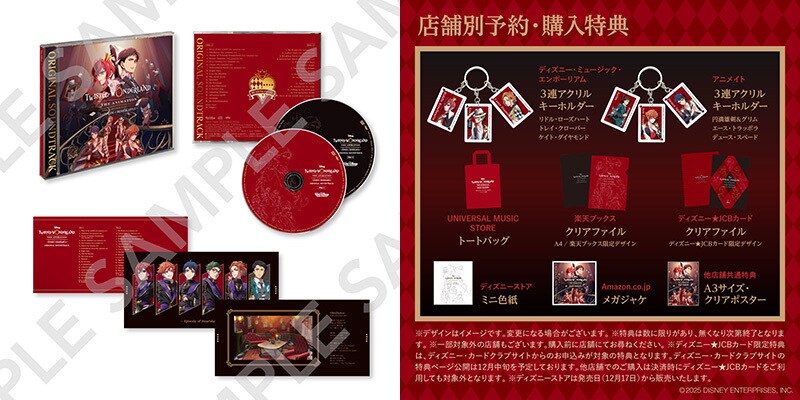 前日には最終話配信直前スペシャル企画として、<「ツイステ」の音楽の魅力を語りつくすリスニング・パーティー>も開催され、音楽にも大きな注目が集まった本作のオリジナル・サウンドトラックCDがついにリリース。本作はゲームの音楽をこれまで担当してきた尾澤拓実が担当。アニメーションの世界をより鮮やかに彩るオープニングテーマ「Piece of my world」、ハーツラビュル寮生が歌うエンディングテーマ「Obedience」はもちろん、劇伴に加えて、CD限定収録のボーナストラック2曲も収録。