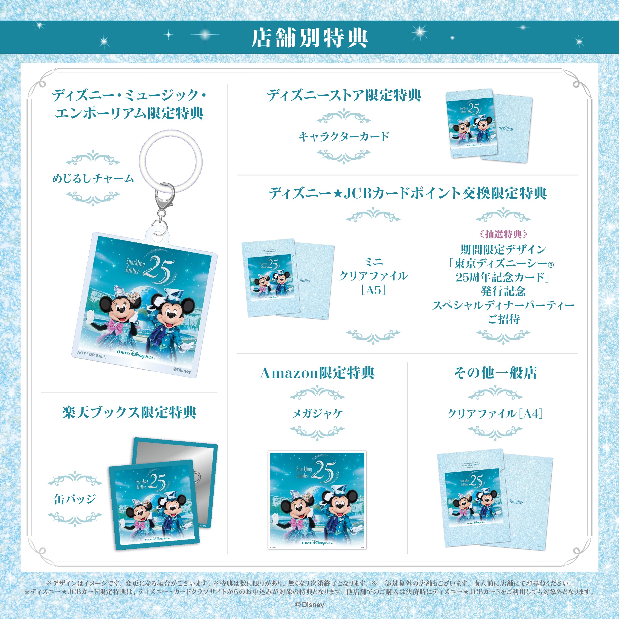 本作のCDをディズニー・ミュージック・エンポーリアムにてご購入いただいた方には、かわいいめじるしチャームをプレゼント!また、ディズニー★JCBカード ポイント交換限定特典として、「東京ディズニーシー・テーマソング」なども手がけたブラッド・ケリー氏登壇、「東京ディズニーシー25周年記念カード」発行記念スペシャルディナーパーティーに抽選で5組10名をご招待。詳細は特設ページでご確認ください。