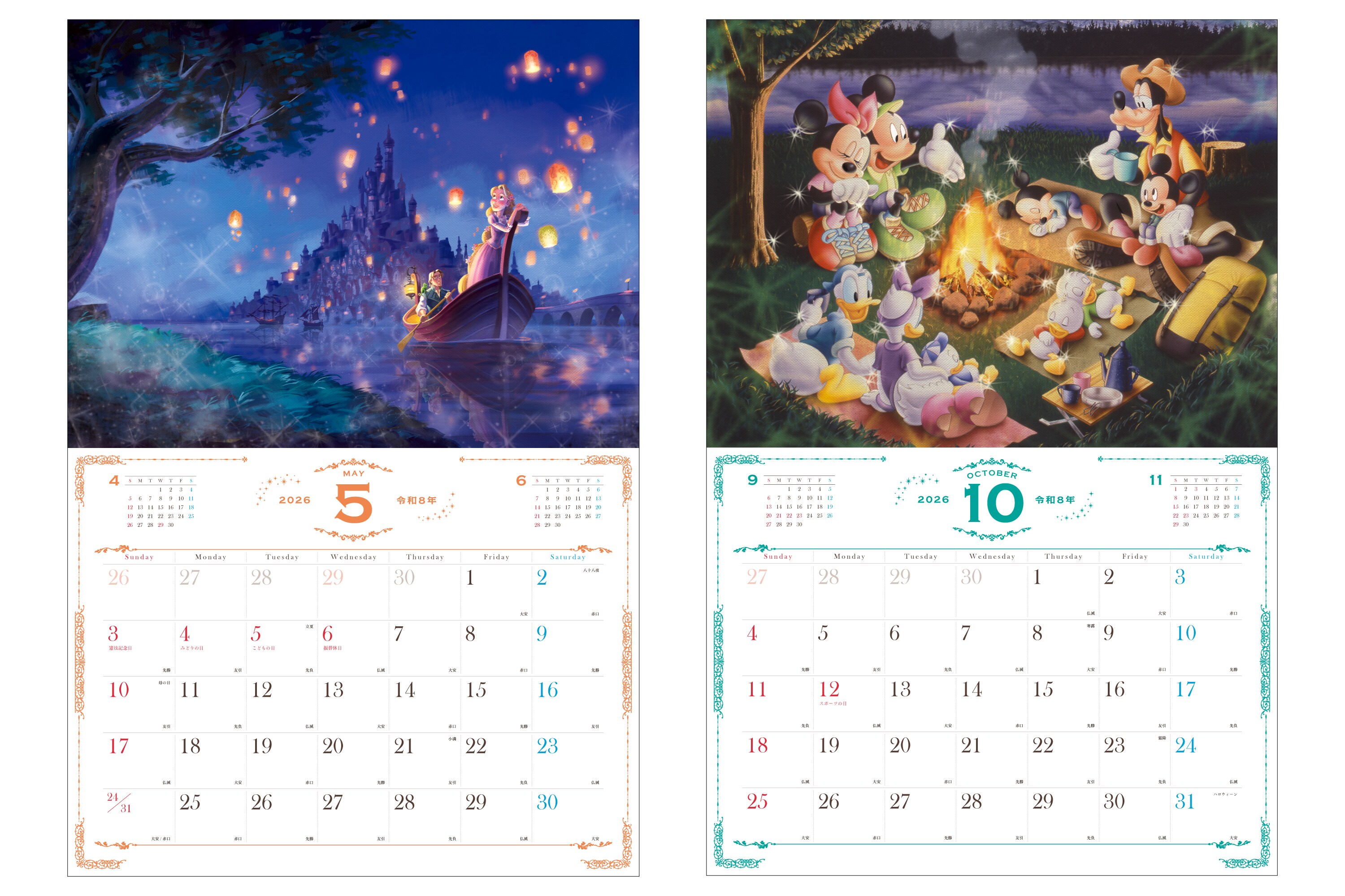 美しいディズニーの世界へようこそ。憧れのディズニープリンセス、心躍るミッキー&フレンズ、ふしぎの国のアリス、バンビ、くまのプーさんなどの優美で希少なアートを月めくり (月間) カレンダーとして楽しむことができます。ファンタジックな世界に癒されながら、輝く一年を過ごしましょう♪