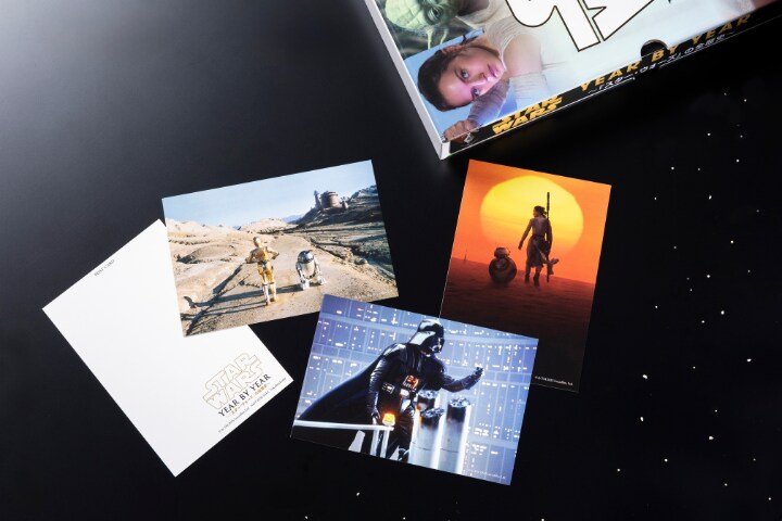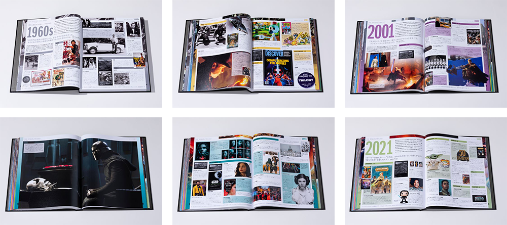 映画のスチール写真はもちろん、ルーカスの手書きの構想用紙やトリビア、スティーブン・スピルバーグ監督との出会い、コンセプトアーティストのラルフ・マクォーリーとの出会い、キャストの選定、撮影の舞台裏、そしてマーチャンダイジングまで、スター・ウォーズを取り巻いた歴史を見事なビジュアルで紹介!
