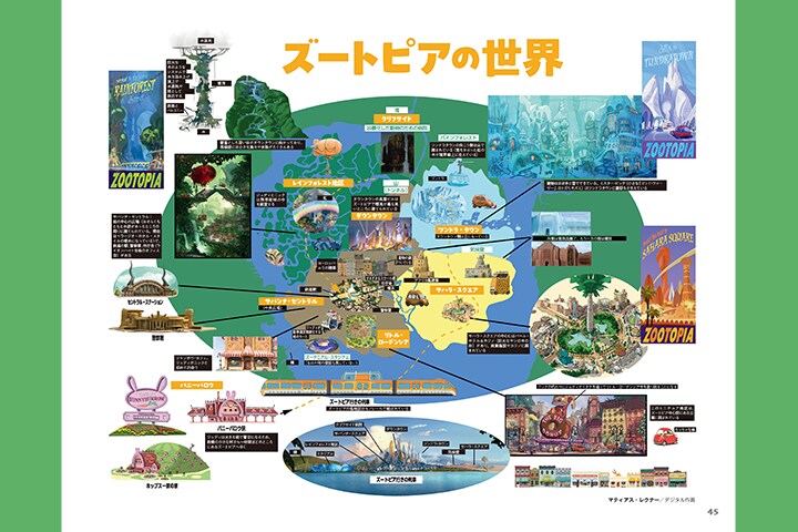 ズートピアに暮らす各キャラクターと、バニーバロウやレインフォレスト地区といった各エリアのコンセプトアートや初期設定、劇中には登場しなかったエリアのコンセプトアートも収録。製作総指揮を務めたジョン・ラセターによる「序文」とパイロン・ハワード&リッチ・ムーア監督による「まえがき」では、『ズートピア』の企画が立ち上がった経緯やディズニーの長編アニメーションにおける本作の位置付けなどが語られる。ズートピアの新たな側面が描かれる最新作『ズートピア2』に備えて、『ズートピア』の成り立ちを辿るのにピッタリな一冊。