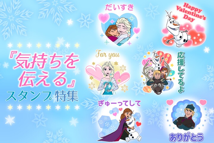 『アナと雪の女王』のデザインの、「気持ちを伝えるスタンプ特集」が配信開始!