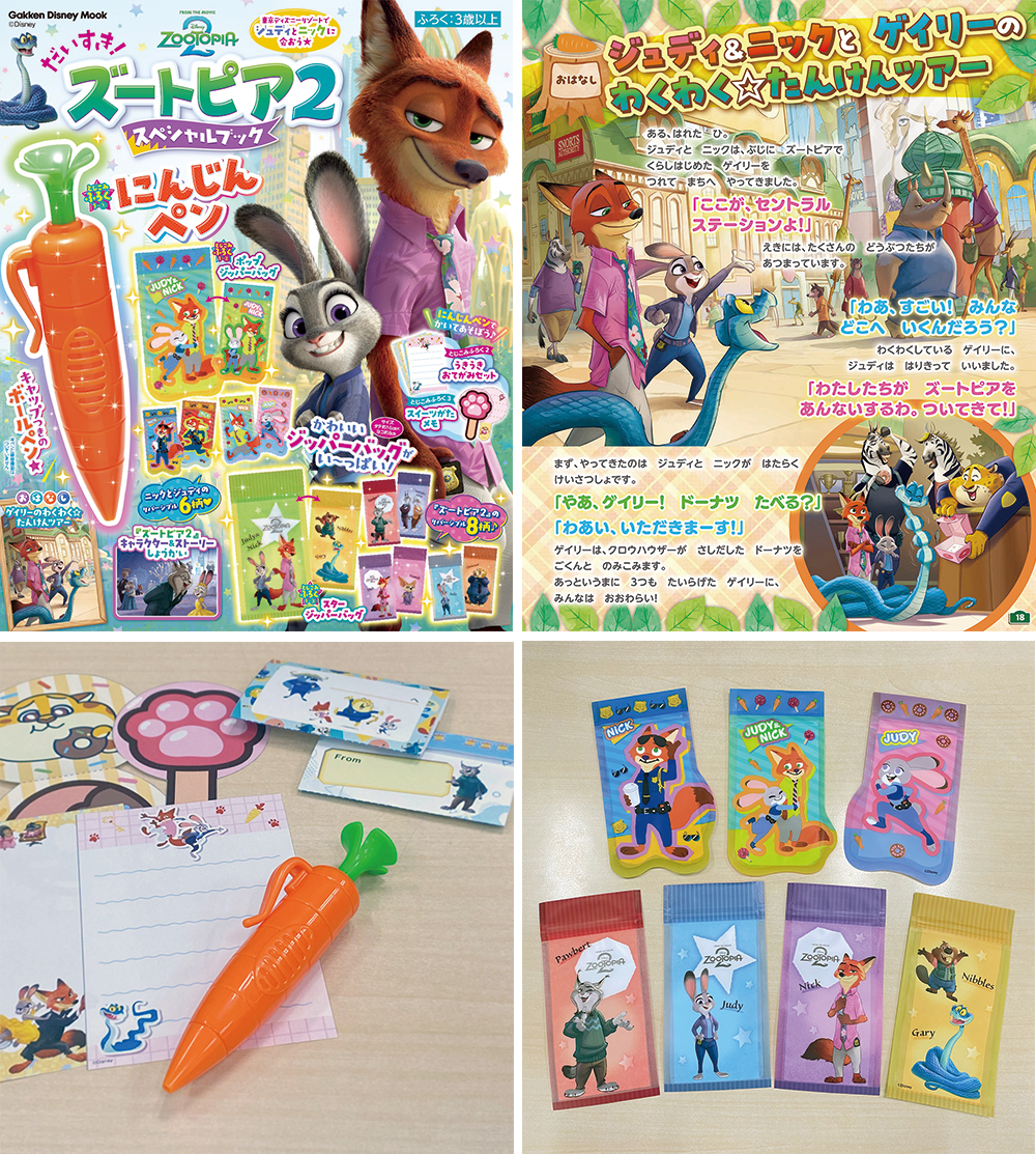 ジュディやニック達と一緒に、映画のストーリーやその後のお話、知育遊びを楽しもう。他にもミニレターセットや最新グッズ紹介、東京ディズニーリゾートで会えるジュディとニックの特集などもりだくさん。