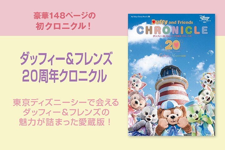 東京ディズニーリゾートにダッフィーが登場して、20周年を迎えた2025年。ダッフィー、シェリーメイ、ジェラトーニ、ステラ・ルー、クッキー・アン、オル・メル、リーナ・ベル、ダッフィー&フレンズ7人のことをどこよりも詳しく特集したクロニクルが初登場。