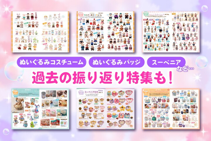 過去の振り返り特集は必見! 今までに登場したぬいぐるみコスチューム、ぬいぐるみバッジ、フード関連スーベニアの振り返り特集もあります。ページを見ながら、当時の思い出も一緒に振り返ってみませんか。