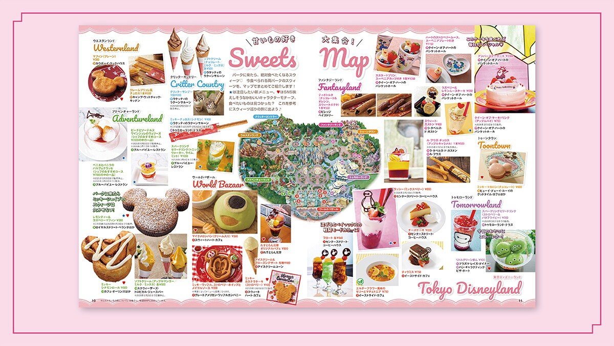 さらにはパーク滞在中には欠かせない上質なコーヒー&スイーツ、ポップコーン、アルコールメニューをそれぞれマップ付きでガイド。