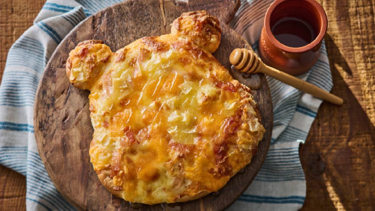 レッスンで学べる『くまのプーさん』の世界をイメージしたオリジナルレシピは、はちみつと4種のチーズピザ、トリュフ香るたまごサンド、カレーチーズのダッチブレッドの3種類。