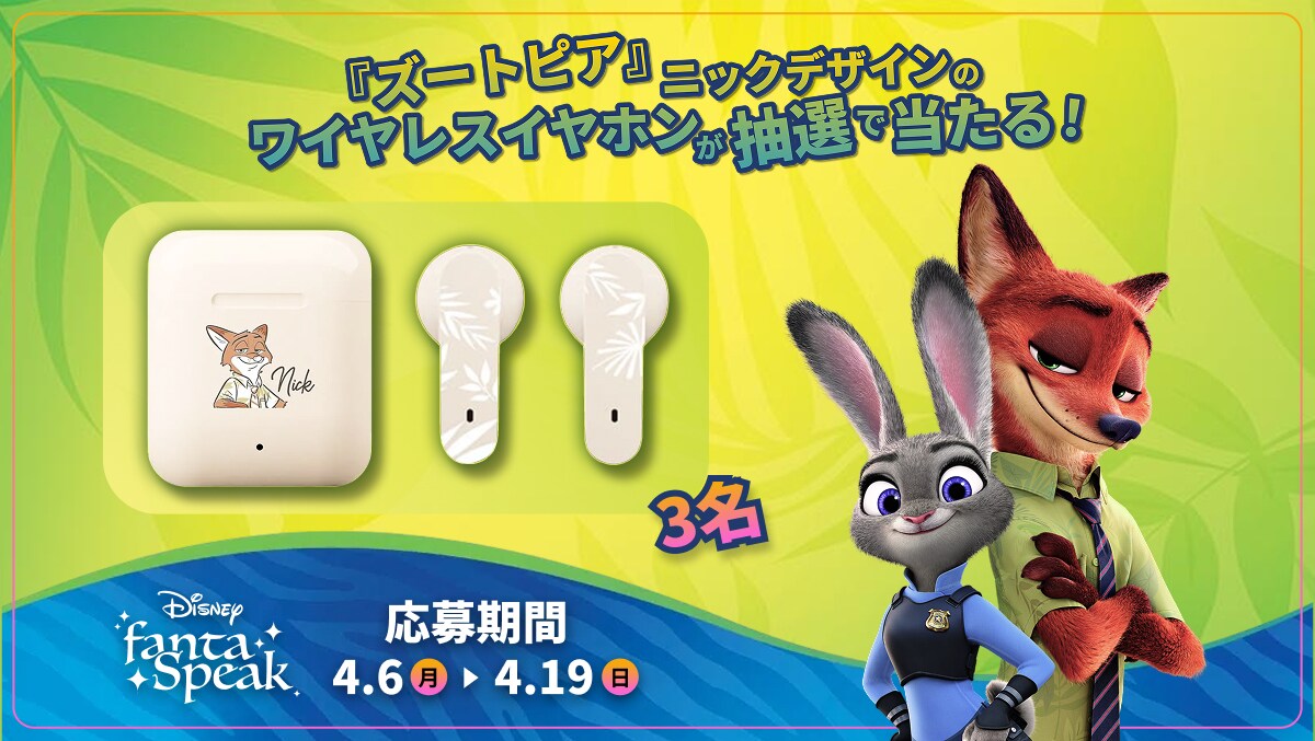 この春は、『ズートピア』ニックデザインのワイヤレスイヤホンを抽選で3名様にプレゼントいたします。