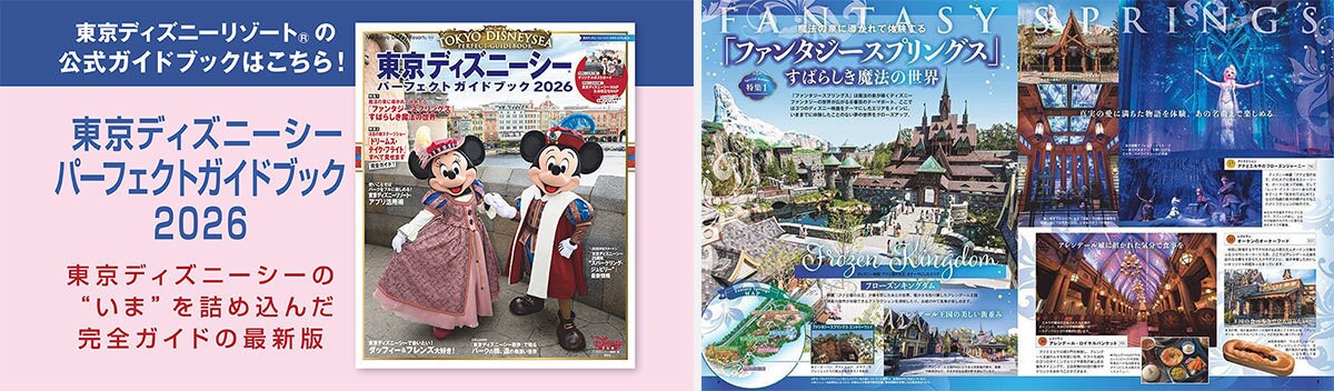 東京ディズニーシーのすべてのアトラクション、レストラン、ショップなどをパーフェクトに紹介するガイドブック2026年度版が発売中です!