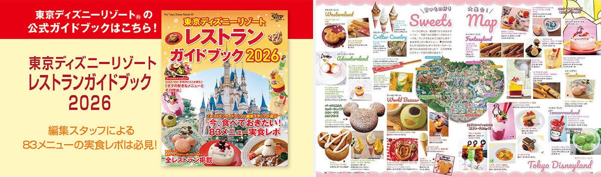 さらに、甘いもの好き必見のスイーツ情報も充実!レストランで提供されるフォトジェニックなメニューから食べ歩きに最適なスイーツまで、どこで食べられるかがすぐにわかるマップ付きでご紹介します。注目の新メニューとSNS映えしそうなキャラクターモチーフのスイーツも!マップを参考に、スイーツ巡りの旅をしてみませんか。