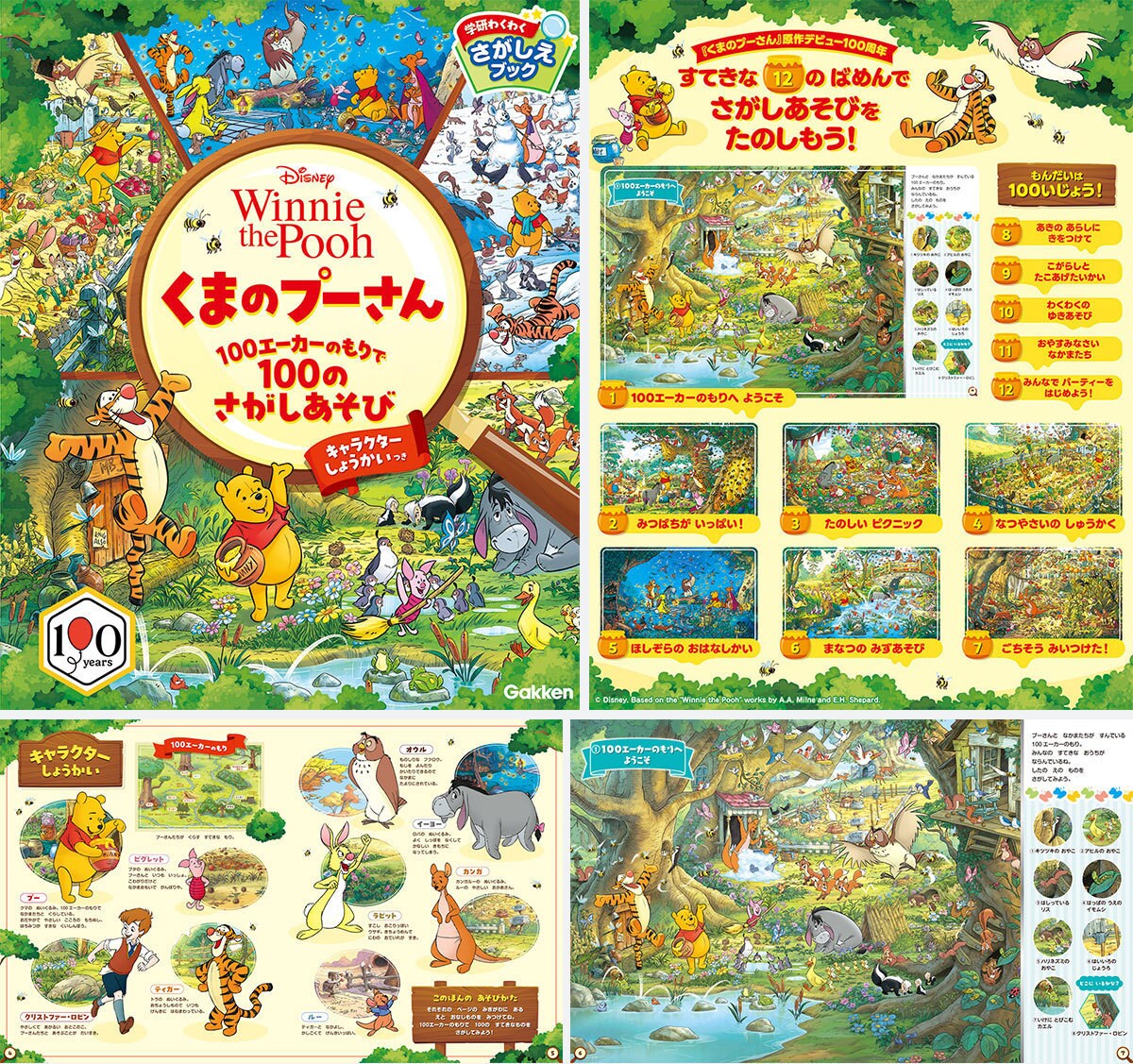 美しい12のイラストで、100エーカーの森の四季をめぐる、さがし絵本「くまのプーさん 100エーカーのもりで100のさがしあそび」(Gakken)