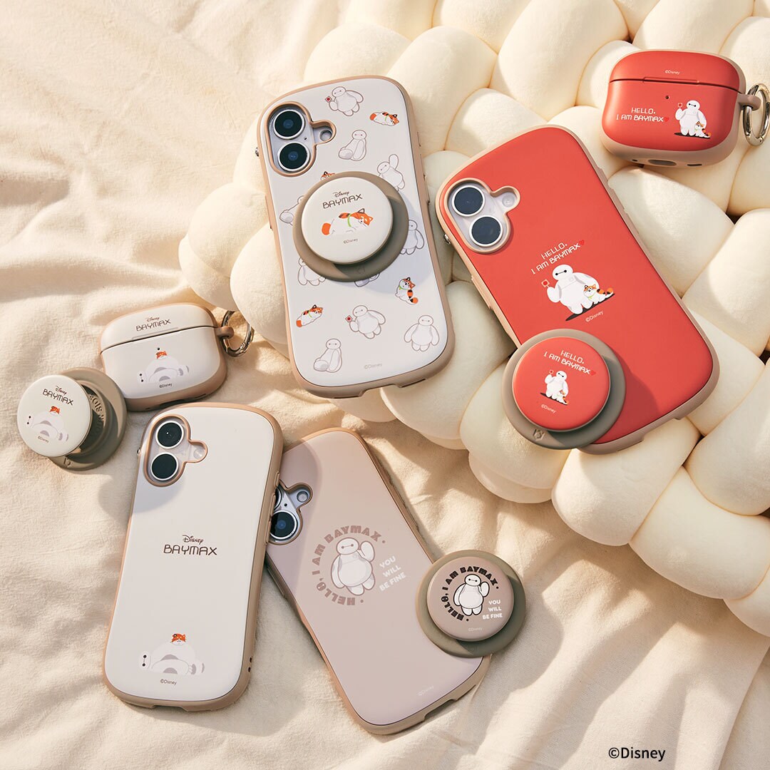 ベイマックスとモチをモチーフにした、やさしい雰囲気のモバイルアクセサリーです。