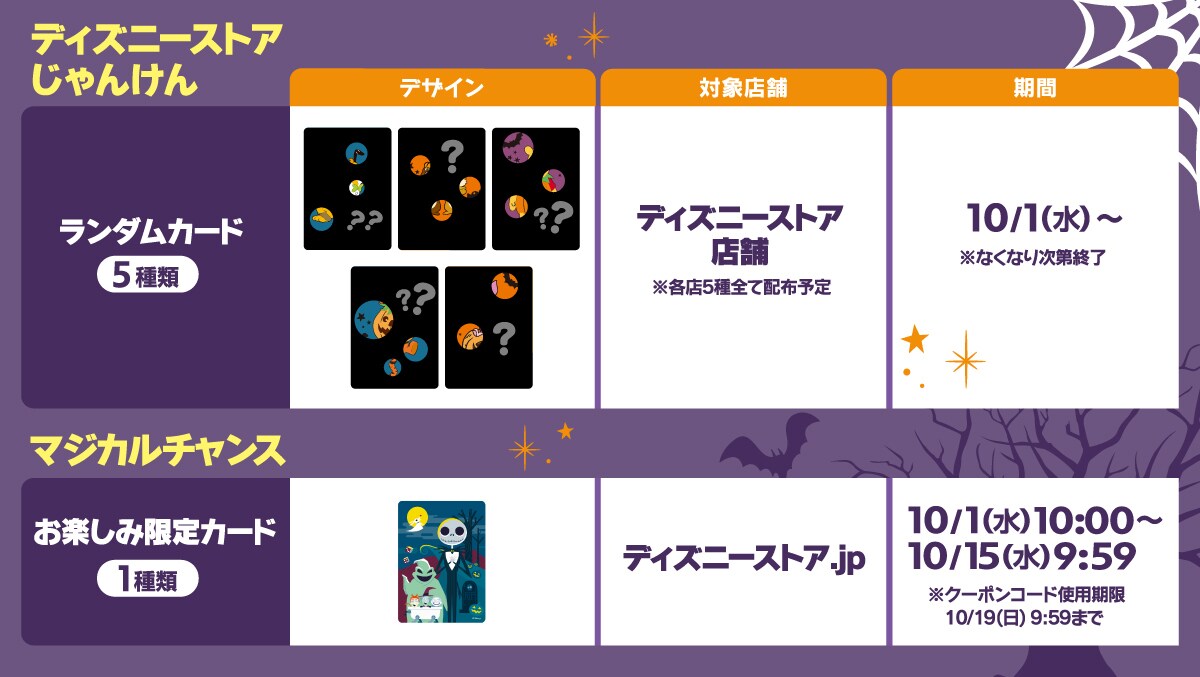 ディズニーストアじゃんけん、ディズニーストア.jp マジカルチャンスでお渡ししているオリジナルカードにハロウィーン期間限定カード 第二弾が全6種類登場!