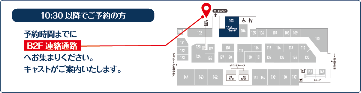 京都ポルタ B2F 連絡通路に 予約時間 までにお越しください。キャストがご案内します。