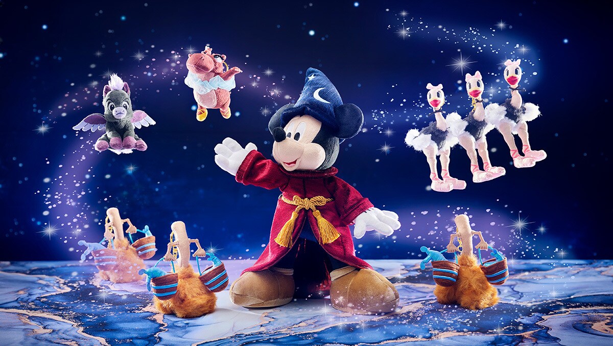 ディズニーストアから、『ファンタジア』公開85周年を記念した新コレクションが登場します。「魔法使いの弟子」に扮したミッキーマウスをはじめ、作品に登場するユニークなキャラクターをモチーフにしたアニバーサリーならではのラインナップです。公開当時のポスターを彷彿させるレトロな彩色に、ブルーやピンクのハイライトが輝くアートを用いたデザインにもご注目ください。