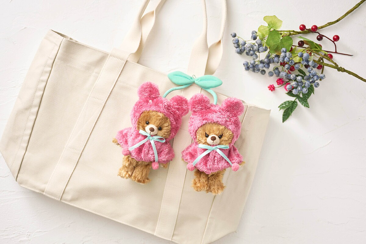 「UniBEARsity(ユニベアシティ)」ぬいぐるみキーチェーン専用コスチュームに、フルーツをモチーフにしたポンチョが登場します。フード部分にミッキーをイメージした丸い耳をデザインし、フルーツのみずみずしさを表現した光沢感のある生地や透明のビーズがポイント。シークレットポンチョは、いちご、ぶどう、もも、オレンジ、レモン、メロンの全6種を展開します。さらに、ふたつ繋がったさくらんぼをモチーフにした、ペアデザインのポンチョも登場。お気に入りのぬいぐるみキーチェーンに着せて、一緒におでかけを楽しめます。