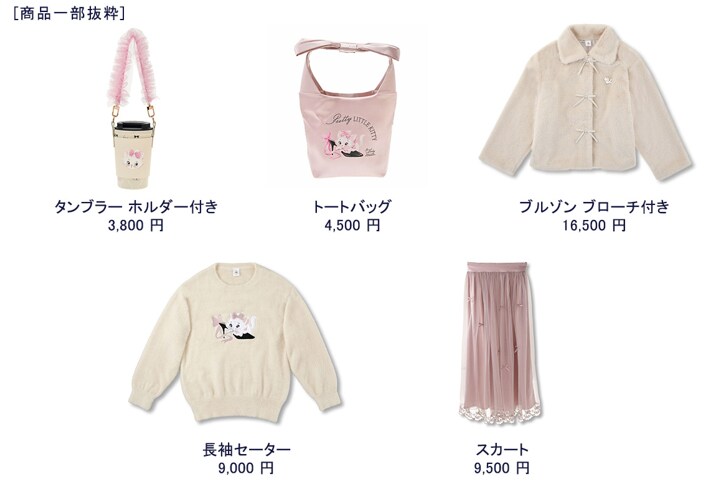 ラインナップは、頭のリボンを気にしてどこか不機嫌そうな表情がキュートなぬいぐるみをはじめ、やわらかな色合いと細めのリボンがポイントの雑貨やファッションアイテムが充実。フリルが華やかなクッションにもなるブランケットや、黒いリボンを飾ったポーチ、キーチェーンなど、おうちでもおでかけでも活躍するアイテムを取り揃えます。そのほか、セーターやブルゾン、ストールなどは、ふんわりと可愛いデザインで冬のおしゃれ気分を盛り上げます。