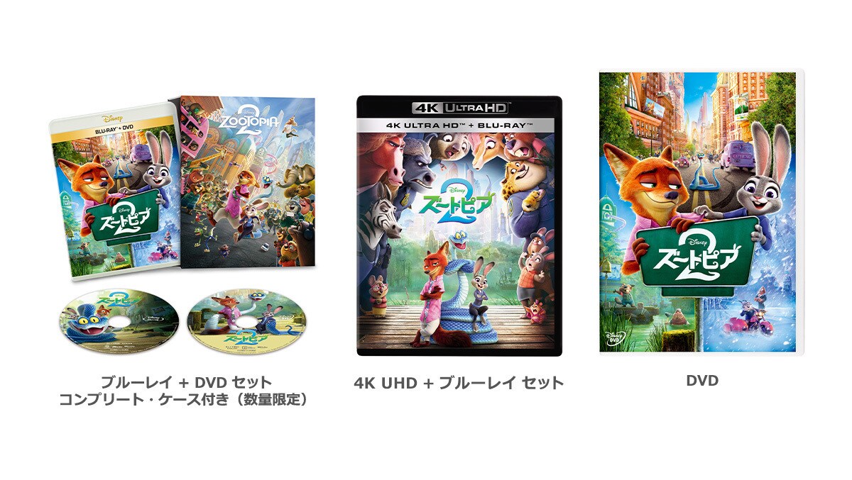 『ズートピア2』ブルーレイ + DVD セット、4K UHD + ブルーレイ セット、DVD 限定商品