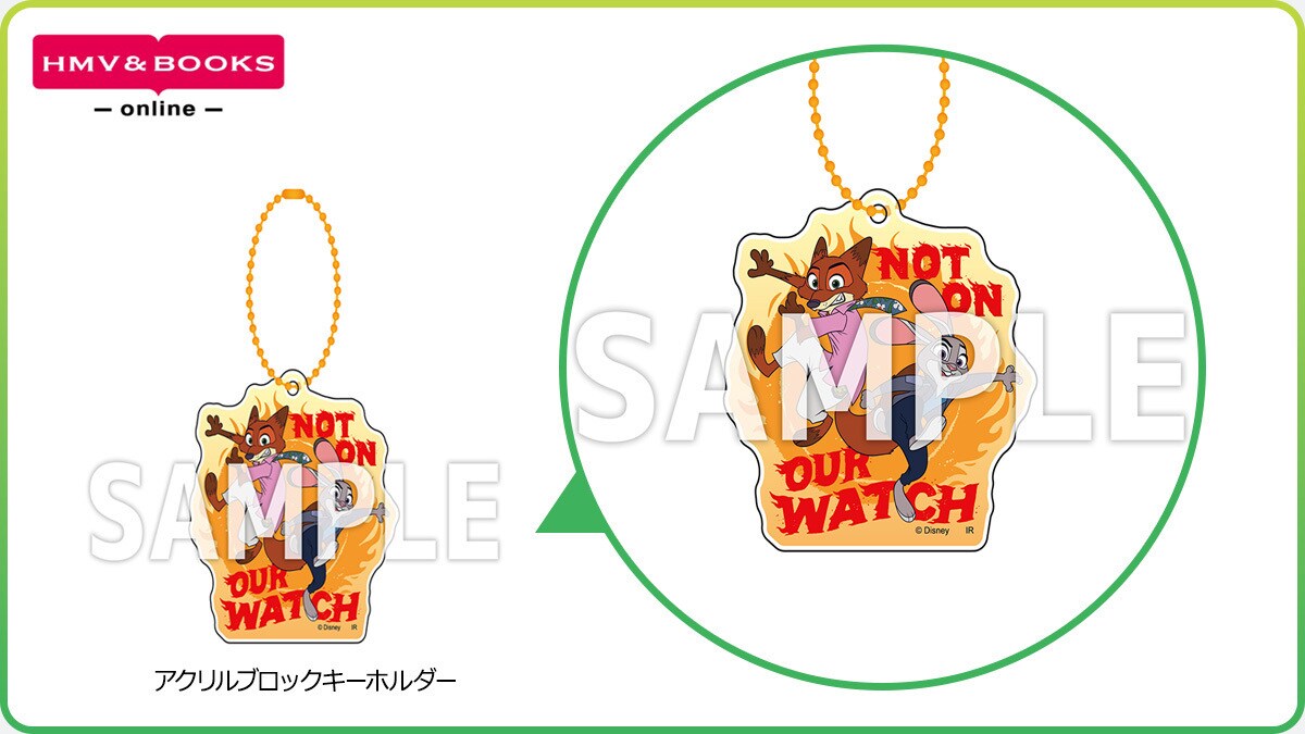 HMV・HMV&BOOKS onlineでは、ニックとジュディのPOPなデザインとNOT ON OUR WATCH(悪事は見逃さないぜ)のコメント入り「アクリルブロックキーホルダー」を展開! お気に入りのカバンなどに身に着けて、一緒に街へお出かけしましょう!