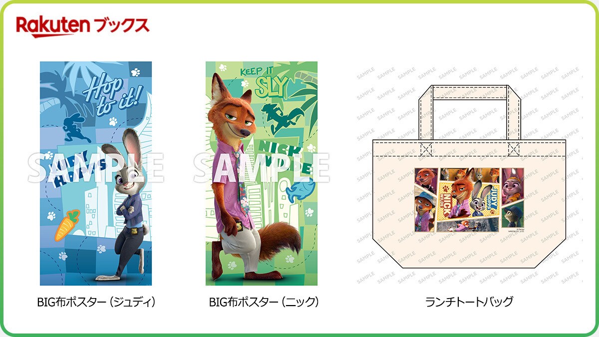 3つのオリジナルグッズとのセット、さらに楽天ブックス限定特典「アクリルスタンド」付きのセットが発売決定! 全長100cm超えの「BIG布ポスター」はジュディとニックの2種のデザイン展開。さらに2枚並べると1つの絵に♪ 日常使いできる「ランチトートバッグ」は2人の豊かな表情を楽しめるデザインで、映画のワクワクがよみがえります!